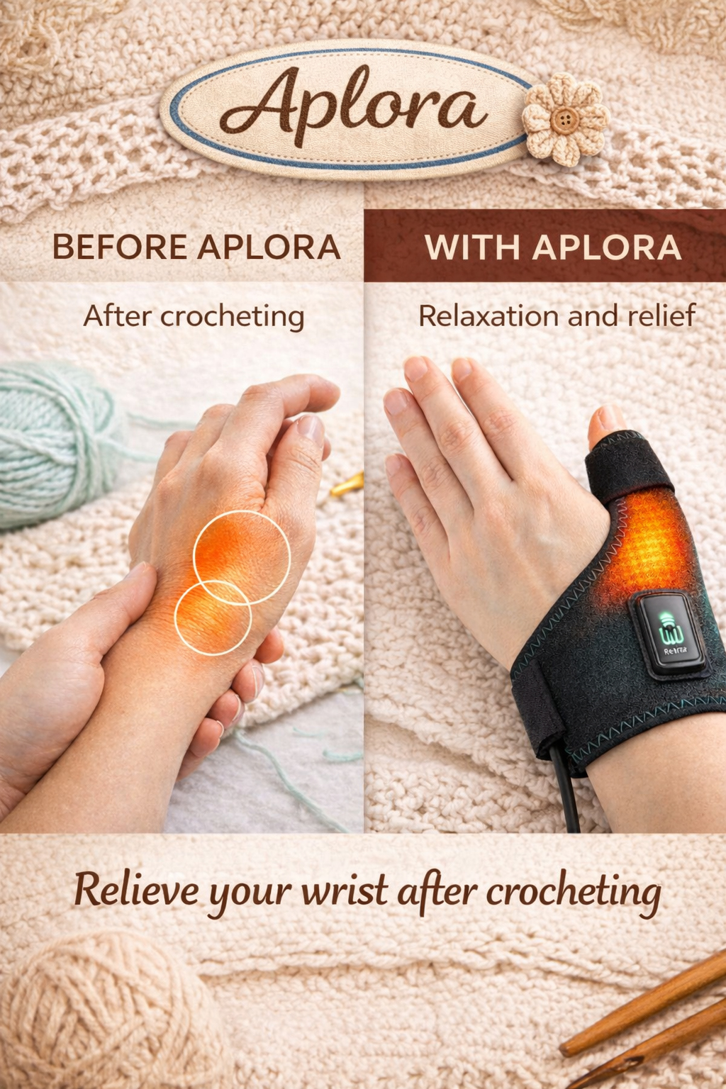 Aplora is ideal for crocheters, knitters, crafters, or anyone who experiences wrist or thumb discomfort from repetitive hand movements.